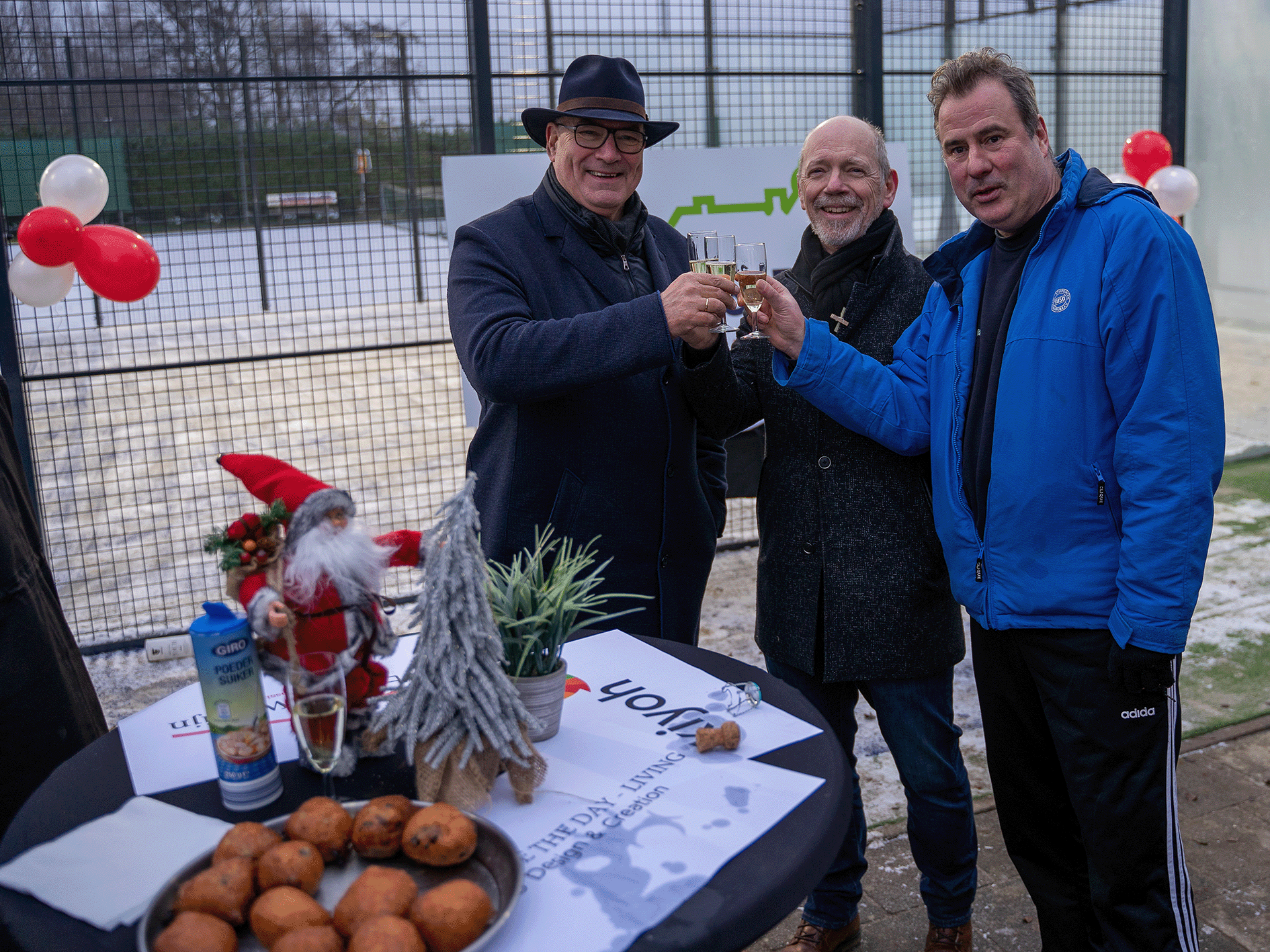 Op 17 december 2022 was het zover, de padelbanen, met uitzicht op kasteel Ammersoyen, werden feestelijk geopend. Op de foto staan van links naar rechts Henny van Kooten (oud-burgemeester gemeente Maasdriel) en voorzitter van de vereniging Jos Joosten en penningmeester Marcel de Rouw.