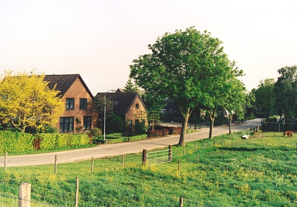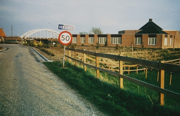 Via de straat Blankensteijn rij je het dorp in. Op de foto ligt aan de linkerzijde van de Blankensteijn een secundaire weg. Vroeger stonden er veel bomen en perken vol met bloemen. In de volksmond werd Hedel dan ook de ‘Keukenhof’ van de Bommelerwaard genoemd. Vooraan links staat het oude watergemaaltje gebouwd in 1937. Het is een blikvanger als je het dorp binnenkomt.