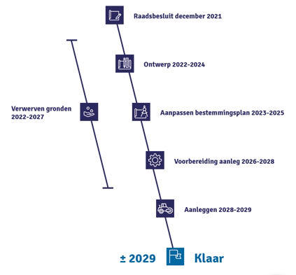 We verwachten het bestemmingsplan eind augustus als voorontwerp ter inzage te leggen en maken dit dan bekend via onze kanalen. Iedereen is dan in de gelegenheid om een reactie in te dienen op de plannen. In totaal neemt deze procedure zo’n 1,5 tot 2 jaar in beslag. Dit duurt zolang omdat alle belangen heel zorgvuldig gewogen en meegenomen moeten worden. Al deze voorbereidingen zijn erop gericht om de ZOR in 2029 te openen.